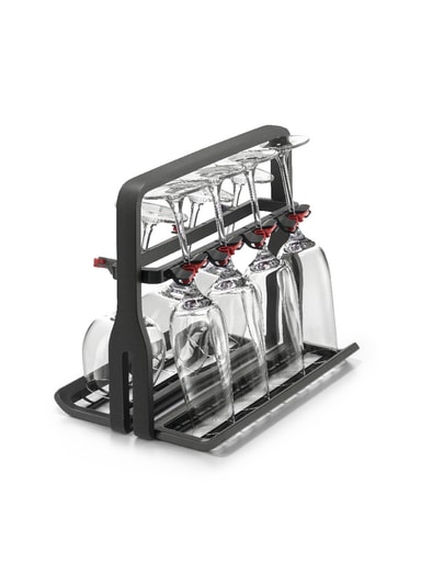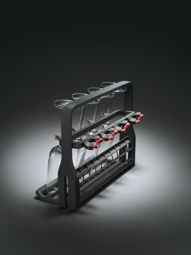 • Flexibla mjuka grepp och skenor som kan hålla en rad olikformade glas