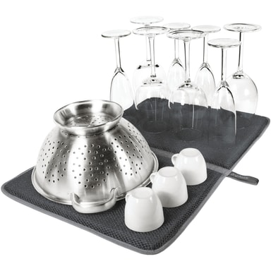 Ett fantastiskt diskställ som antingen ersätter eller kompletterar det traditionella. Ställ dina vinglas, nappflaskor, större kastruller upp och ner och de torkar garanterat fukt- och fläckfritt. Stuvas enkelt undan och kan tvättas i 40 grader.Läs mer om produkten