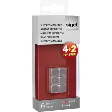 Sigel Magnet SuperDym C5 Strong Cube-Design (B x H x D) 10 x 10 x 10 mm Tärning Silver 6 st GL192Set med 6 supersnygg, silverfärgade NeoDym-Magneten Strong med stark hållkraft · Magnettärning / kub magneter i modern cube-design, högglansigt,Läs mer om produkten