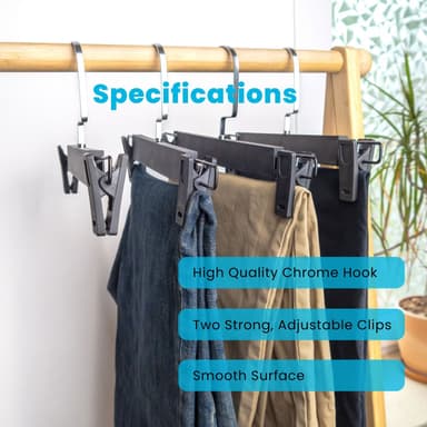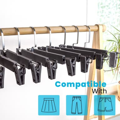 FUNKTION: Hängarna är 32 cm långa och klämmorna är strukturerade på insidan för att förhindra att plagget glider av. Klämmorna kan enkelt öppnas och stängas. Med detta praktiska tillbehör är dina byxor. Kjolar och andra kläder alltid säkert och snyggt förvarade.
