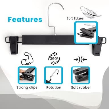 DESIGN: Byxhängare tillverkade av förkromad metall och högkvalitativ plast i en klassisk och tidlös matt svart. så att de enkelt kan passa in i alla garderober eller garderober.
