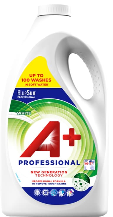A+ Professional White 5 liter flytande tvättmedel 51801 tar enkelt bort de mest envisa av fläckar, även vid lägre tvättemperaturer. Dina vita kläder kommer att bevara sin lyster och få en fräsch doft.Läs mer om produkten