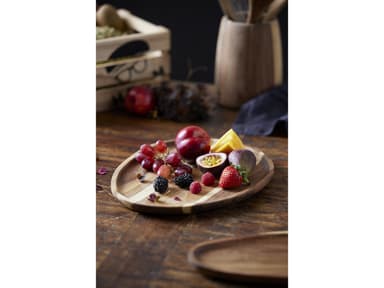 Läckert serveringsfat i akaciaträ i en vacker organisk form. Fatet kan användas till det mesta, till exempel tapas, kakor, snacks, och den kan också stå framme utan något i den med akaciaträdet fantastiska färgspel som ett dekorativt inslagLäs mer om produkten