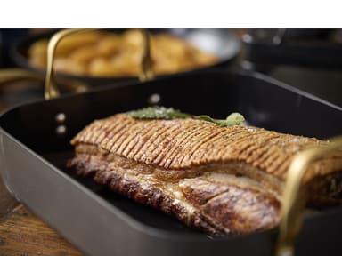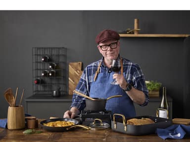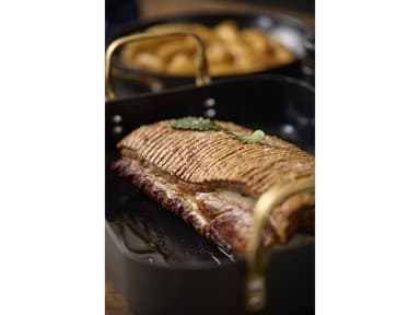 Brasserie-serien är tillverkad i aluminium. Stekpannan har en keramisk beläggning på insidan, svart beläggning på utsidan och handtag i matt mässingsfärg. Tål ugn upp till 220 grader. Vi rekommenderar att du använder plast- eller träredskapLäs mer om produkten