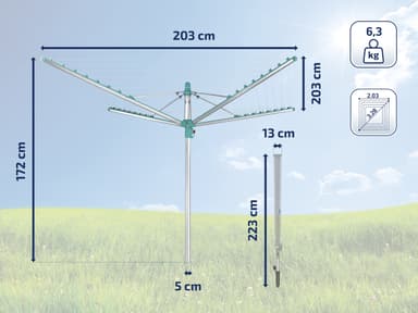 Paraplytorkställ med 50 meter torkyta. Easy-Lift system gör att stället enkelt fälls upp genom att man bara drar i ett snöreLäs mer om produkten