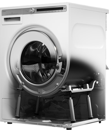 Quattro Construction™ består av fyra stötdämpare som överför vibrationerna från trumman till bottenplattan. Hela konstruktionen är placerad i höljet, vilket förhindrar vibrationer ytterligare. Förvånande smart.