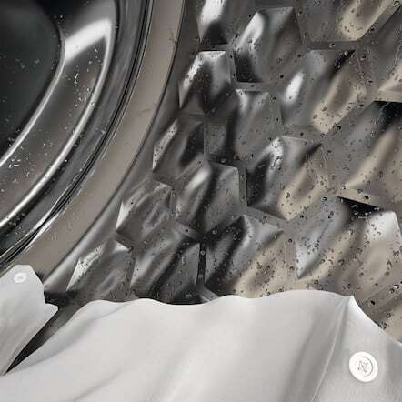 Vår skontrummas unika design är en stor bidragande faktor till hur väl din tvätt tas omhand. Tack vare trummans speciella form bildas ett vattenskikt under rotationen så att tvätten glider säkert och fibrerna skyddas. På detta sätt bevaras tvättens kvalitet under en lång tid.