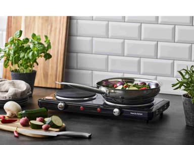 Laga eller värm upp läckra måltider bekvämt med Nordic Sense dubbel gjutjärnsplatta 37144. Med 2 gjutjärnsplattor med justerbar temperatur och indikatorlampa ger denna apparat allt du behöver för din matlagning.Läs mer om produkten