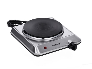 Severin KP 1092 elektrisk kokplatta med en effekt på 1500 watt för hushållsbruk Kokplatta Lämplig för små kök Överdel i borstat rostfritt stål Värmeplatta: diameter 18 cm Steglös temperaturinställning Kontrollampa Mått: L 25 x B 28,5 x H 8 cmLäs mer om produkten