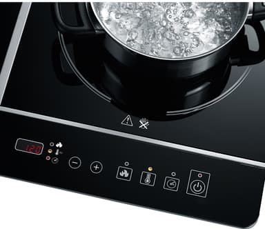 Severin kokplatta DK 1031 är en praktisk hjälpreda för platser med begränsad yta som har två induktionsmatlagningszoner, automatisk kastrullsensor, pekkontrollpanel, belyst skärm, 10 effektnivåer och en yta som är lätt att rengöra.Läs mer om produkten