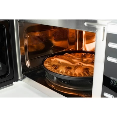 Detta är är en superkomplett digital multifunktionsmikrovågsugn som erbjuder flera tillagningsmöjligheter. Med sin 25l kapacitet, 900W effekt och en 1000W grill, kommer du att kunna värma, laga, grilla, baka och tina upp en mängd rätter och recept. Den har 5 effektnivåer, 9 recept i automenyn, 2 tillagningslägen som kombinerar matlagning och grill och varmluftsfunktion för att uppnå krispigare resultat.