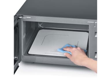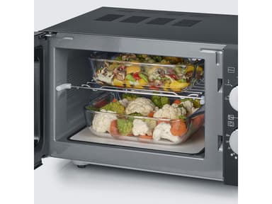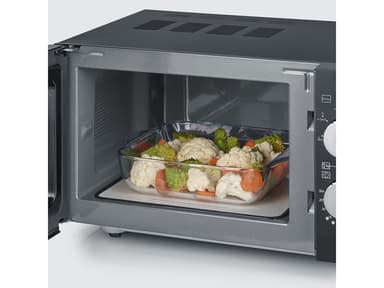 Mikrovågsugn med grillfunktion och platt keramisk botten som ersätter den vanliga roterande tallriken. Det gör ugnen rymligare och enkel att rengöra. Med ugnens båda vred kan du välja effekt och tillagningstid. Ugnsrum ca 20 liter. 1000 watt. MW 7762Läs mer om produkten