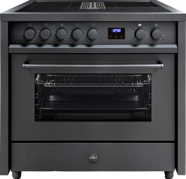 Witt spis med integrerad fläkt EMBRACE 90 HOOD MB är en fristående spis med inbyggd fläkt. Den kommer med 4-hastighetsinställningar, 4 induktionszoner, 4 boosters, en timer, ett barnlås, grytdetektering och ett dubbelt inverterat ventilationssystem.Läs mer om produkten