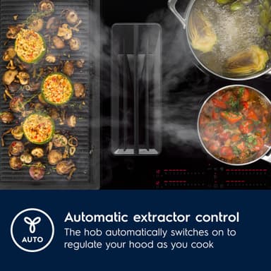 Automatisk fläktfunktion innebär att hällen automatiskt kan slå på och reglera fläkten efter din matlagning – köksluften hålls fräsch medan du kan fokusera på maten.