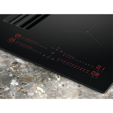 Njut av flera fördelar med en induktionshäll som passar in i ett 60 cm skåp med en inbyggd fläkt för optimalt luftflöde. Bridge induktionshäll med inbyggd fläkt har även en Bridge-funktion som låter dig kombinera två kokzoner till ett större område.