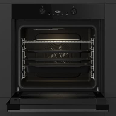Denna avancerade teknik ser till så att din matlagning alltid blir perfekt. Allt du stoppar in i den här ugnen tillagas jämnt tack vare ugnens något rundade insida som tillsammans med smart placerade specialvärmare möjliggör utmärkt och jämn varmluftsfördelning. Detta betyder krispigt på utsidan, saftigt på insidan. Stor glaslucka och bra ugnsbelysning gör att du kan titta till din mat när som helst utan att öppna luckan och släppa ut varm luft. Effektiv och jämn tillagning är garanterad.
