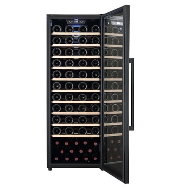 Med denna helt nya modell får du ett läckert enzons vinkylskåp (5-20°C) som har en svart glasdörr med UV-fritt glas och plats till 84 flaskor av Bordeaux-typen.