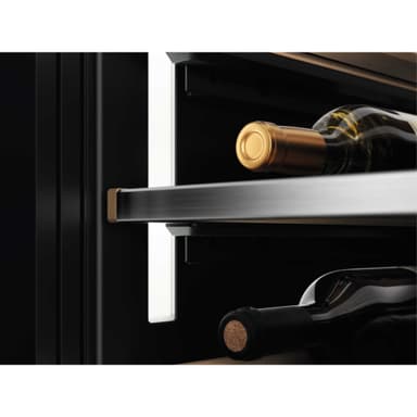 Visa upp hela din kollektion med 700 Perfect Shelving-funktionen. De utdragbara trähyllorna har designats med perfekta mellanrum för att rymma vanliga 750 ml flaskor, även din favoritchampagne, utan att repa etiketterna.