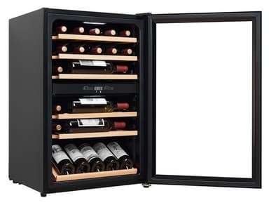 Fristående vinkyl med två justerbara temperaturzoner och plats för 37 flaskor. Vinkylen från skandinaviska Cavin har en UV-skyddad glasdörr, elektronisk reglering och kompressorkylning.Läs mer om produkten