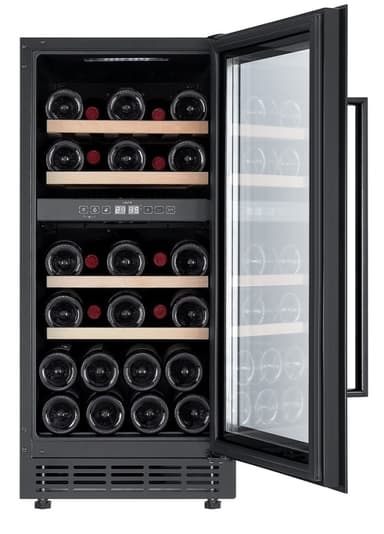 Nyhet från Cavin! Inbyggbar vinkyl i modern, skandinavisk design med blanksvart yta och fyra utdragbara hyllor i trä.Läs mer om produkten