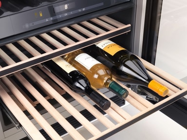 Med SoftClose stängs dörren till din vinkyl från Miele tyst, mjukt och automatiskt: den integrerade dämpningen förhindrar att de lagrade vinerna slås sönder för att dörren slår igen för hårt. Dessutom stänger SoftClose även dörren automatiskt från en öppningsvinkel på 30 grader. På detta sätt vet du att ditt vin alltid förvaras lugnt och säkert.