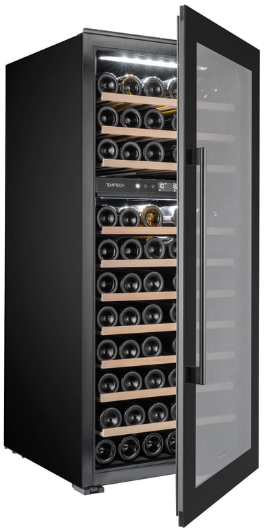Temptech Oslo vinskåp OZ124DB-24 har en snygg svart design som integreras sömlöst i alla moderna hem. Med en kapacitet på 74 flaskor erbjuder det två temperaturzoner. Det är också kompatibelt med Vinotag-appen.Läs mer om produkten